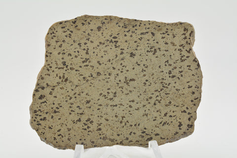 This amazing Martian (shergottite) meteorite resembles a perfectly cooked chocolate chip cookie. The outer edge shows a darkened fusion crust while the true beauty of the inside is showing many distinctive mm-sized brown-green olivine phenocrysts. A true Beauty!