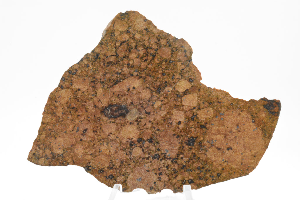 The color on this NWA 15953 is stunning, water leached in over time and transformed into this absolutely amazing orangish brown color. There are also areas with remaining fusion crust.